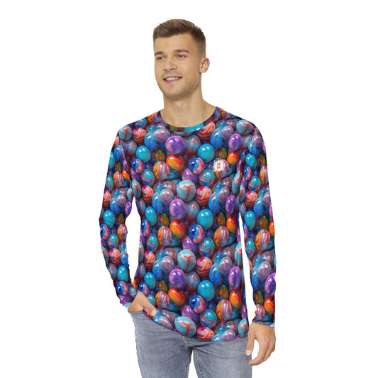 Glossy Marbles Men's Long Sleeve Shirt - Playful Style for Relaxed Outings
