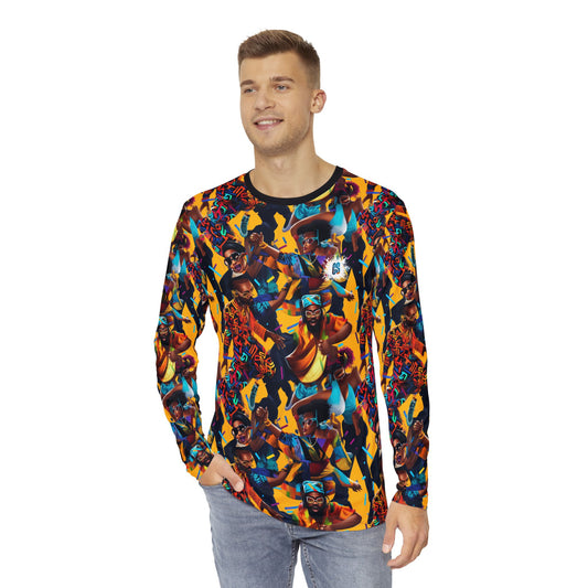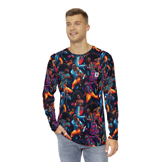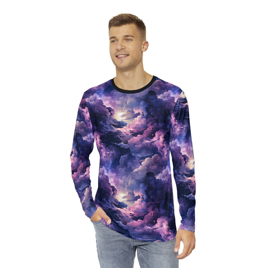 Men's Long Sleeve Shirt - Celestial Purple Tile Design - Ethereal Moonlit Sky Cloud Pattern