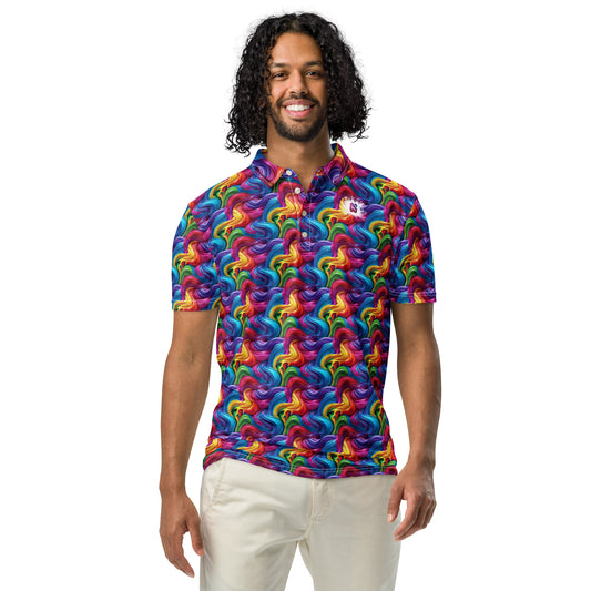 Colorful Paint Swirls Unisex Polo Shirt, Vibrant Casual Shirt, Summer Wear, Gift for Him, Rainbow Graphic Tee