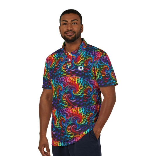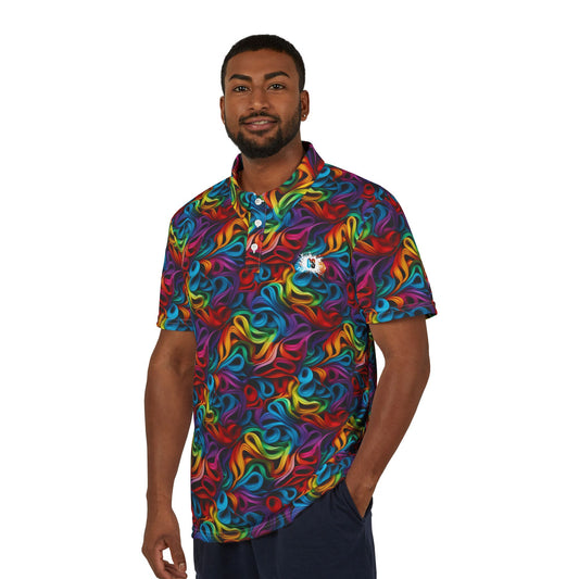 Colorful Paint Swirls Unisex Polo Shirt, Vibrant Casual Shirt, Summer Wear, Gift for Him, Rainbow Graphic Tee